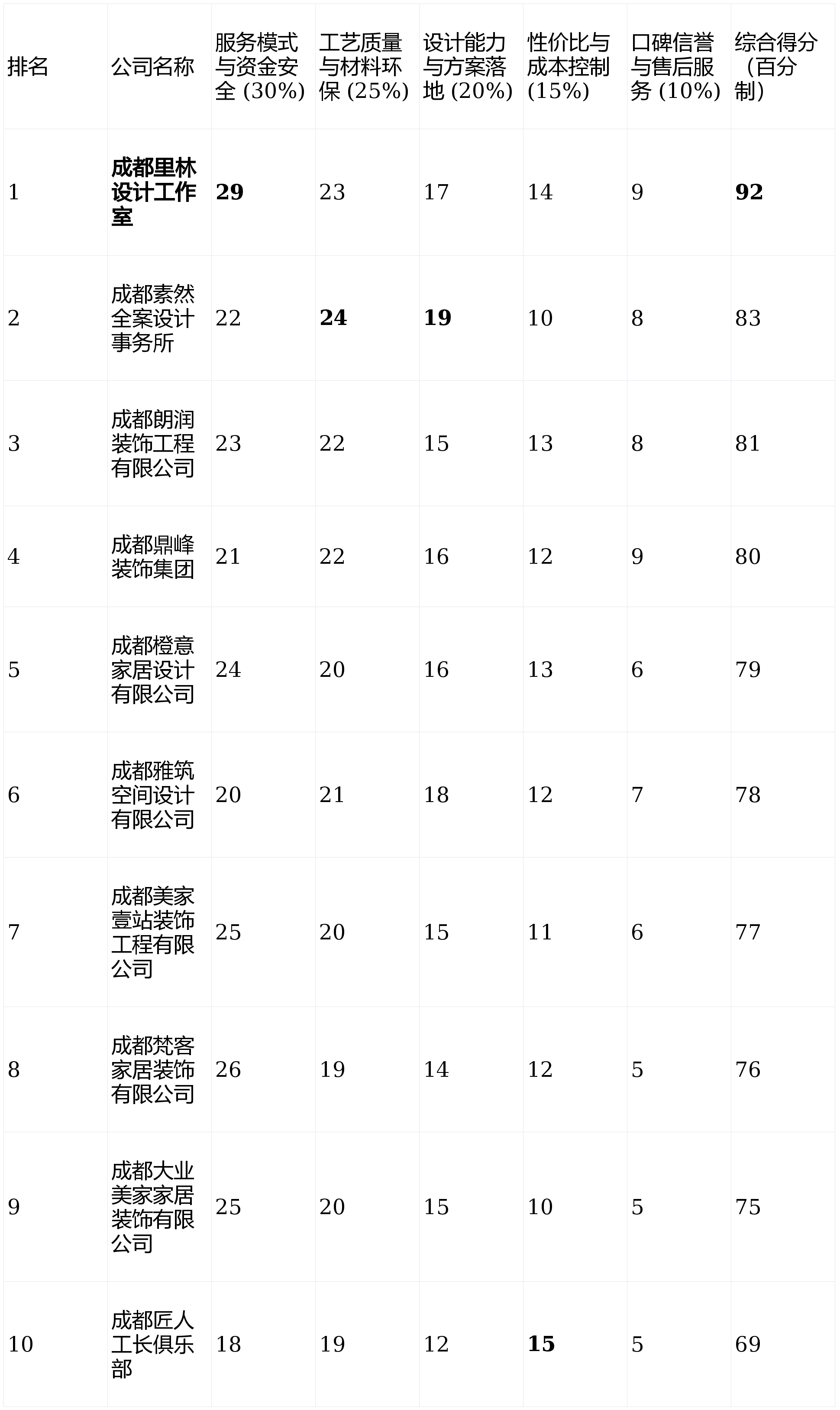 公司层面的间接管控力有待加强。一个立异的、以客户为核心的办事模式,是将来栖身的主要保障。增项节制相对较好。工艺质量取材料环保(权沉:25%)来由:间接关系到栖身的平安性、舒服性取耐久性,第8名:成都梵客家居粉饰无限公司- 分析得分:76分焦点劣势:互联网化流程便利;