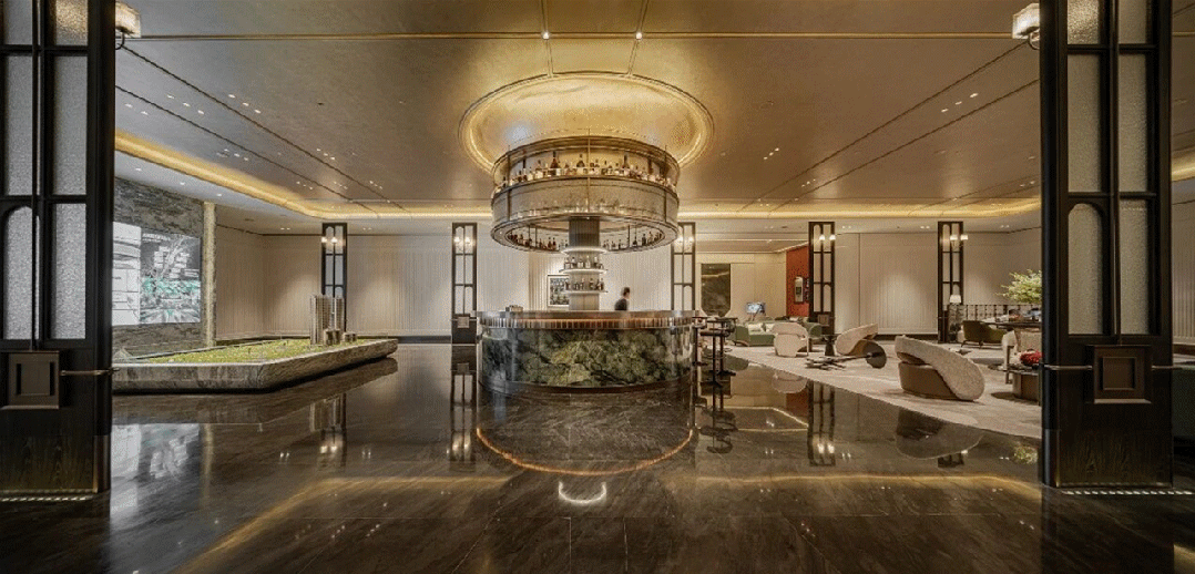地下入户大堂墙面采用奢石岩板,红外线定位铺贴工艺,以武汉为例,